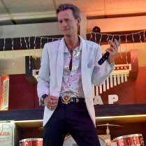 Zu einem großartigen Erfolg ist die „Grote Elvis Benefiet Show“ geworden, die die Fanclubs „Elvis Memories Belgium“ aus Belgien und „The King’s World (TKW)“ aus Deutschland am Freitag, dem 21. Juli 2023, in der belgischen Stadt Mol präsentiert haben. Mit der Veranstaltung setzten die beiden Fanclubs ihre bereits seit vielen Jahren andauernde gute und freundschaftliche Zusammenarbeit fort. Ort des Geschehens war diesmal der „Feestzaal Heidelicht“ im Mol-Stadtteil Postel, eine Art Landgasthof mit großem Saal inklusive Bühne, der mit seinem klassischen Ambiente ein idealer Schauplatz für das Event war und den Besuchern zudem Speisen und Getränke zu fairen Preisen anbot. Nach Saalöffnung um 12.00 Uhr mittags nutzten die ersten Fans zunächst ausgiebig die Gelegenheit, auf dem gut bestückten internationalen Elvis-Fanartikel-Markt nach CDs, LPs, DVDs und Merchandise-Produkten aller Art vom King of Entertainment zu stöbern. Dann jedoch mussten die Verantwortlichen zunächst einen kleinen Schock verkraften: Als die bekannte belgische „Ron Elly Band“ um 14.00 Uhr das Live-Musik-Programm eröffnen sollte, fehlte der Schlagzeuger der Gruppe. Wie sich herausstellte, hatte der Musiker auf der Fahrt zum „Feestzaal Heidelicht“ einen Unfall gehabt. Persönlich war ihm dabei zum Glück nichts zugestoßen, doch sein Auto erwies sich als nicht mehr fahrbereit, so dass eine Teilnahme am Auftritt nicht mehr realisiert werden konnte. Die Band beschloss schließlich, nur Sänger Ron Elly mit Backing-Tracks im Halbplayback-Verfahren auftreten zu lassen, was die Live-Konzert-Stimmung naturgemäß etwas schmälerte, aufgrund der Begeisterungsfähigkeit des Publikums aber keineswegs zum Reinfall geriet. Zum ersten Highlight des Events wurde im weiteren Verlauf des Nachmittags ein Rock’n’Roll-Tanzwettbewerb, bei dem die teilnehmenden Paare viel Gefühl für Rhythmus und sogar beeindruckende Fähigkeiten zur Akrobatik bewiesen (oberes Foto). Nachdem auch die angekündigte Elvis-Tombola und ein Elvis-Quiz durch Fanclub-Urgestein Sylvain Vertez von „Elvis Memories Belgium“ erledigt worden waren, ging das Live-Musik-Programm unter dem Motto „Rock Around The Clock“ noch bis nach Mitternacht weiter. Hierbei bewiesen die knapp 300 Fans, die aus den Benelux-Ländern, aus Frankreich und aus dem nicht weit entfernten Deutschland zu der fast ausverkauften Veranstaltung angereist waren, ein bemerkenswertes Stehvermögen, denn als gegen 0.15 Uhr der letzte Ton verklungen war, hatten nur die Wenigsten bereits vorzeitig die Heimreise angetreten. Höhepunkte des Auftrittsreigens waren die jeweils etwa halbstündigen Shows des Niederländers Ricky Memphis (mittleres Foto) und des Belgiers Steven King, wobei der Erstgenannte durch seine ungewöhnliche Song-Auswahl mit Liedern wie „Edge Of Reality“ und „I Can Help“ überzeugte, während der Letztgenannte mit ungeahnter Stimmgewalt bei Klassikern wie „An American Trilogy“ und „If I Can Dream“ zu begeistern vermochte. Für den Schlusspunkt und die Krönung des Abends sorgte indes der bekannteste der mehr als zehn verschiedenen Elvis-Interpreten, die für die „Grote Elvis Benefiet Show“ verpflichtet worden waren: Peter Ryan aus Venlo an der deutsch-niederländischen Grenze zeigte wieder einmal, dass er aktuell zu den besten Elvis-Interpreten Europas zählt. Als einziger Sänger der Besetzung würdigte Ryan (unteres Foto) nicht nur Elvis Presley sondern auch dessen in diesem Jahr verstorbene Tochter Lisa Marie, indem er zusammen mit einer weiblichen Stimme das bewegende künstliche Elvis-/Lisa Marie-Duett „Where No One Stands Alone“ in fantastischer Art und Weise darbot und im Anschluss daran den Elvis-Titel „Angel“ in zauberhafter Form interpretierte, indem er von der Bühne herunterstieg und fast engelhaft durch das Publikum wanderte. Es waren die berührendsten Momente einer Veranstaltung, die nicht nur ein würdiges Andenken an den King leistete, sondern auch eine gute Spendensumme für den wohltätigen Zweck, nämlich zugunsten des „Elvis Presley Memorial Trauma Center“ in Memphis/Tennessee in den USA erbrachte. Herzlich danken möchte unser TKW-Event-Team unseren Freunden Frans Michielsen und Sylvain Vertez von unserem Partner-Fanclub „Elvis Memories Belgium“ sowie dem freundlichen Team des „Feestzaal Heidelicht“ in Mol-Postel für die jederzeit sehr angenehme Kooperation! Datum: 22. Juli 2023 – Quellen: TKW-Event-Team, Fanclub „Elvis Memories Belgium“ |