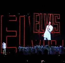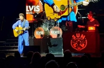 Vor einer Woche begleitete die Leitung unseres Fanclubs „The King’s World (TKW)“ das Eröffnungswochenende der neuen Spielzeit von „Elvis – Das Musical“ im „Hotel Estrel“ in Berlin. Unsere ersten Eindrücke von den aktuellen Aufführungen der Multi-Media-Produktion des deutschen Unternehmens „Stars In Concert“ schilderten wir sofort nach unser Rückkehr aus der Bundeshauptstadt in einem ersten Kurzbericht und versprachen, in Kürze eine ausführliche Review des laufenden Berlin-Gastspiels von „Elvis – Das Musical“ folgen zu lassen. Dieses Versprechen wollen wir heute gerne einlösen. Um es gleich vorweg zu nehmen: Bei seiner diesjährigen Rückkehr an seine Geburtsstätte bewies das Elvis-Musical, dass es auch viele Jahre nach seinem Start ein immer noch sehenswertes Event für die Fans des King ist. Ein wesentliches künstlerisches und technisches Element der Produktion ist die Verknüpfung der Live-Aktion der Besetzung auf der Bühne mit gefilmtem Archiv-Material aus Elvis’ Leben und Karriere, das über insgesamt fünf Video-Leinwände eingespielt wird. Im Mittelpunkt des Live-Geschehens steht als Elvis-Darsteller seit jeher der gebürtige Ire Grahame Patrick. Der in Kanada aufgewachsene und in den USA ins Show-Business gekommene Sänger und Schauspieler besitzt eine für die Darstellung aller Karriere-Abschnitte unseres Idols unabdingbar notwendige Fähigkeit: Er kann sowohl gesanglich als auch optisch und schauspielerisch den jungen Elvis ebenso gekonnt und glaubwürdig verkörpern wie den älteren. Vor allem verblüfft es immer wieder, wie Patrick die hohe Stimmlage von Elvis bei frühen Songs wie „That’s All Right“ oder „Heartbreak Hotel“ ebenso gut trifft wie die tiefe bei späteren Liedern wie „Suspicious Minds“ oder „My Way“ (obere zwei Fotos). Dies unterscheidet Grahame Patrick von den meisten Kollegen seiner Zunft ganz erheblich. Großartig sind aber auch die Beiträge aller anderen Personen aus der Besetzung. Dies beginnt bei der vorzüglichen Big Band mit Robin Scott als Keyboarder und musikalischem Leiter und setzt sich fort bei Eva Maria Bender, die zunächst als „Sun Records“-Sekretärin Marion Keisker agiert und später bei den Konzert-Szenen als einzelne weibliche Begleitstimme brilliert. Stets hübsch anzusehen sind ferner die Einlagen zweier attraktiver Tänzerinnen (drittes Foto). Zu einem weiteren Highlight der Aufführungen gerät freilich der Schauspieler Daniel Neumann, der wie schon in der Vergangenheit in einer Doppelrolle zunächst als Elvis’ erster Produzent Sam Phillips und anschließend als Elvis’ Manager Tom Parker zu sehen ist. Insbesondere bei der Darstellung des ‚Colonel’ schafft Neumann die gewollte schmale Gradwanderung zwischen historisch seriöser Verkörperung und amüsanter Parodie mit bemerkenswerter Leichtigkeit (viertes Foto). Die Krönung von „Elvis – Das Musical“ kommt schließlich durch niemand Geringeren als den scheinbar unverwüstlichen Ed Enoch. Der originale Begleitsänger des King aus dem „Stamps Quartet“ verleiht zusammen mit seiner heutigen Formation dieser legendären Gesangsgruppe den Darbietungen so viel zusätzliche musikalische Substanz und eine solche historische Authentizität (unteres Foto), dass das Publikum gar nicht anders kann, als stehende Ovationen zu spenden! Stichwort Publikum: Auch nach vielen Jahren besitzt „Elvis – Das Musical“ völlig verdientermaßen eine immer noch große Zugkraft. Die von unserem TKW-Team im „Hotel Estrel“ besuchten Aufführungen waren allabendlich sehr gut besucht und bescherten nicht nur dem Musical riesigen Applaus sondern auch unserem Fanclub-Stand eine willkommene Aufmerksamkeit. Für die auch in diesem Jahr wieder sehr angenehme und freundschaftliche Zusammenarbeit danken wir allen Beteiligten von „Elvis – Das Musical“ und den Verantwortlichen im „Hotel Estrel“ sehr herzlich! Die Gelegenheit, das Musical noch eine ganze Zeitlang in Berlin zu erleben, bietet sich allen Fans noch bis Mitte September 2023. Alle notwendigen Informationen hierzu finden sich weiterhin hier. Datum: 19. August 2023 – Quellen: TKW-Event-Team, Hotel Estrel Berlin, Stars In Concert |