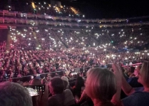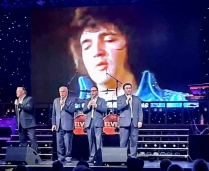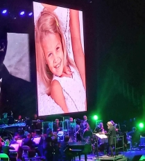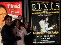 Zum absoluten Höhepunkt der diesjährigen neuen Großbritannien-Tournee von „The Very Best Of Elvis In Concert – Live On Screen“ wurde am vergangenen Dienstag, dem 31. Oktober 2023, das Gastspiel in der riesigen „O2 Arena“ in der britischen Metropole London. Unser deutscher Fanclub „The King’s World“ war mit einer sechsköpfigen Gruppe von Mitgliedern aus Nordrhein-Westfalen und Berlin an die Themse gereist, um die erneute virtuelle Auferstehung des King vor Ort miterleben zu können (oberes Foto). Nach einem ersten Kurzbericht vor wenigen Tagen wollen wir heute nun wie versprochen eine ausführliche Review der Londoner Show folgen lassen. „The Very Best Of Elvis In Concert – Live On Screen“, produziert von Danny Betesh und Dan Scott für das britische Unternehmen „Kennedy Street Enterprises“ im Auftrag von Elvis Presley Enterprises (EPE) in Memphis, ist der legitime Nachfolger des von 1997 bis 2012 mit riesigem weltweiten Erfolg gelaufenen Projekts „ELVIS – The Concert“ mit Elvis Presley live auf Videowand und seiner Original-Konzertbesetzung der 70er Jahre live auf der Bühne. Diese durch die Mitwirkung der originalen Musiker und Begleitsänger(innen) des King unfassbar authentische Transformation eines echten Elvis-Konzertes in die heutige Zeit konnte nach 2012 durch das Alter und teilweise auch Ableben der Elvis-Originale nicht mehr fortgesetzt werden. Auf der Suche nach einem neuen Konzept für die Weiterführung der Elvis-Leinwand-Konzerte stieß EPE auf das renommierte „Royal Philharmonic Orchestra“ aus Großbritannien, das aufgrund seiner musikalischen Klasse und seines internationalen Bekanntheitsgrades eine ideale neue Live-Begleitung für (Video-)Elvis zu versprechen schien. Der Plan ging auf, und in Verbindung mit den immer besser werdenden Video-Techniken entstand ab 2016 mit „Elvis In Concert – Live On Screen“ ein grandioses Multi-Media-Konzert-Event neuer Dimension, das seitdem die Welt begeistert und den King endgültig unsterblich werden lässt. Nachdem die „The King’s World“-Leitung die neue Show bereits 2016 bei der allerersten Tournee durch Großbritannien sowie 2017 in Deutschland und danach zum 40. Todestag des King ebenfalls 2017 in Memphis erlebt hatte, waren wir auf London 2023 umso mehr gespannt. Hocherfreut durften wir feststellen, dass „Elvis In Concert – Live On Screen“ nichts von seiner Faszination verloren hat. Dass die Darbietung wie schon bei den früheren Aufführungen seit 2016 nicht wie die echten Elvis-Konzerte der 70er Jahre und ebenso die erwähnten späteren „ELVIS – The Concert“-Shows mit dem traditionellen „2001 Theme“ und „See See Rider“ sondern einer instrumentalen Version von „If I Can Dream“ begann, die dann in „Burning Love“ mit dem „Aloha From Hawaii“-Elvis mündete, mag Puristen nicht recht gefallen, ist aber im Zuge der Absicht, etwas Neues zu kreieren, zulässig und kam auch sehr gelungen rüber (zweites Foto). Hiernach wirkte der erste Set des insgesamt zweistündigen Konzertes durch die fast ausschließliche Darbietung von Balladen wie „You’ve Lost That Lovin’ Feelin’“, „In The Ghetto“ und „Bridge Over Troubled Water“ etwas zu getragen, was im Publikum zwar zu hingerissenem Applaus aber noch nicht zu hemmungsloser Ekstase führte. Diese entwickelte sich dann aber im zweiten Set, als eine furiose Abfolge von Rock-Songs wie „Blue Suede Shoes“, „Hound Dog“ und „All Shook Up“ mit dem „That’s The Way It Is“- und „’68 Comeback“-Elvis die rund 18 000 Besucher in der ausverkauften Riesenarena in Begeisterungsstürme versetzte (drittes Foto). Zu einem besonderen emotionalen Highlight wurde „Memories“, als – ermuntert durch den Begleitchor des Orchesters – die Fans mit ihren Handys die Halle in ein komplettes Lichtermeer verwandelten (viertes Foto). Gänsehaut pur! Und als sich schließlich mit „The Wonder Of You“, „Suspicious Minds“ und „An American Trilogy“ das Konzert seinem Ende näherte, gab es in der „O2 Arena“ kein Halten mehr: Die 18 000 Menschen standen auf, tanzten ausgelassen, sangen lauthals mit und jubelten ihrem Idol auf der Leinwand sowie dem 40-köpfigen Orchester auf der Bühne grenzenlos zu! Überhaupt das Orchester: Dass ein philharmonisches Ensemble Balladen und Gospels bombastisch begleiten kann, darf Niemanden überraschen. Doch das „Royal Philharmonic Orchestra“ kann auch großartig rocken, wobei vor allem Leadgitarrist Mitch Dalton, Pianist Dominic Ferris und Schlagzeuger Tim Goodyer sichtbar riesige Freude daran hatten, anders als bei einer Beethoven-Sinfonie mal richtig loslegen zu können! Dieselbe Freude merkte man auch dem musikalischen Leiter und Dirigenten Robin Smith an: Der ‚Maestro’ hat nicht nur durch die Ausarbeitung sämtlicher Arrangements und durch die generelle künstlerische Leitung einen fundamentalen Anteil am Gelingen der Darbietung, sondern geht in seiner Funktion so emotional auf, dass seine Action am Dirigentenpult der von Elvis oben auf der Leinwand kaum nachsteht. Ein beeindruckendes Schauspiel, das zudem verdeutlichte, wie sehr sich Robin Smith längst mit der Musik von Elvis Presley identifiziert! Die Leinwände wiederum sind schon 2016 technisch und optisch so verfeinert worden, dass Elvis’ Video-Auftritt phasenweise zu einer virtuellen Performance himmlischen Ausmaßes geriet. Bleibt noch der Beitrag von Jerry Schilling: Der langjährige enge Freund und organisatorische Mitarbeiter von Elvis führte bei der jüngsten Tournee als Gastgeber und Moderator durch die Abende (fünftes Foto) und berichtete sehr ergriffen und aus seiner ganz persönlichen Sicht über den Künstler und Menschen Elvis, über Graceland als Zuhause und Zufluchtsort des King und über Elvis’ zu Jahresbeginn 2023 tragisch verstorbene Tochter Lisa Marie, die auf diese Weise eine besonders berührende Würdigung in der Show erfuhr (unteres Foto). Und so war „The Very 