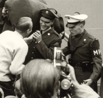 Genau heute vor 65 Jahren, am 1. Oktober 1958, betrat Elvis Presley als Soldat der US-Army zum ersten Mal deutschen Boden. Als das aus Brooklyn/New York kommende amerikanische Truppentransportschiff „General Randall“ an der Kolumbuskaje in Bremerhaven anlegte und kurze Zeit später der berühmteste G. I. der USA mit geschultertem Seesack die Gangway herunter schritt, erwartete ihn bereits eine ganze Heerschar von Fans und Medienvertretern (Foto). Viel Zeit blieb nicht, denn schon gut eine Stunde später saßen Elvis und seine Kameraden in einem Zug, der sie zu ihrer Einheit in Friedberg in Hessen transportierte. Wie wir alle wissen, kam Elvis nicht freiwillig in unser Land, sondern war per Befehl hierher versetzt worden und litt zudem während seines gesamten Aufenthaltes unter Heimweh und unter der Sorge um seine auf Eis liegende Karriere. Dennoch ist es völlig verständlich, dass das heutige Datum für die deutschen Fans des King immer ein besonderer Tag sein wird. Damals hieß es „Welcome to Germany, Elvis“, und dies tragen wir auch heute noch in unseren Herzen! Datum: 1. Oktober 2023 – Text: Leitung von „The King’s World“ |