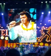 Auf den emotionalen Höhepunkt mit dem „Candlelight Vigil“ in der Nacht vom 15. auf den 16. August 2023 folgte gestern bei der „Elvis Week“ in Memphis das absolute musikalische Highlight des Gedenkens an den King. Am Abend des 16. August 2023 und damit direkt am 46. Todestag unseres Idols bot Veranstalter Elvis Presley Enterprises (EPE) auf der „Graceland Soundstage“ vor dem Hintergrund des diesjährigen 50-jährigen Jubiläums von Elvis’ Fernseh-Live-Konzert „Aloha From Hawaii Via Satellite“ vom 14. Januar 1973 das Multi-Media-Event „Elvis Aloha From Hawaii 50th Anniversary Concert“. Die Produktion präsentierte Elvis aus seinem „Aloha From Hawaii“-Konzert live auf Mehrfach-Video-Wänden sowie eine Big Band mit Chor live auf der Bühne, wobei Elvis’ originaler Pianist aus der „TCB-Band“ Glen D. Hardin als Gaststar in der Band mitwirkte (s. Foto). Von den Besuchern im ausverkauften Saal wurde die faszinierende Darbietung zu Recht als endgültiger Höhepunkt der diesjährigen „Elvis Week“ wahrgenommen und mit enthusiastischem Applaus bedacht. Datum: 17. August 2023 – Quelle: Elvis Presley Enterprises (EPE) |