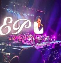 Hervorragend angelaufen ist die neue Großbritannien-Tournee von (Video-)Elvis und dem „Royal Philharmonic Orchestra“. Unter dem diesjährigen Titel „The Very Best Of Elvis In Concert – Live On Screen“ ist dieses fantastische Multi-Media-Konzert-Event neuer Dimension mit Elvis live auf Mehrfach-Videowänden und dem „Royal Philharmonic Orchestra“ live auf der Bühne sowie Elvis’ langjährigem engen Freund und Mitarbeiter Jerry Schilling als Gastgeber/Moderator in dieser und der nächsten Woche sieben Mal in großen Hallen britischer Großstädte zu sehen. Auf das Auftakt-Konzert in Glasgow/Schottland am vergangenen Mittwoch, dem 25. Oktober 2023, folgten Gastspiele in Manchester/England am Donnerstag, dem 26. Oktober 2023, und in Birmingham/England am gestrigen Freitag, dem 27. Oktober 2023 (s. Foto). Wie man es im auch heute noch extrem Elvis-begeisterten Großbritannien erwarten durfte, waren alle Konzerte vollständig oder zumindest annähernd ausverkauft und boten bei der erneuten virtuellen Auferstehung des King eine einzigartige Atmosphäre. Heute macht die Tournee in Newcastle/England Station. Zum Höhepunkt der Konzert-Reise wird aber natürlich das Gastspiel in der riesigen „O2 Arena“ in der Metropole London am nächsten Dienstag, dem 31. Oktober 2023, werden, bei dem auch unser Fanclub „The King’s World“ mit einer kleinen Reisegruppe aus Deutschland zugegen sein wird. Datum: 28. Oktober 2023 – Quellen: Elvis Presley Enterprises (EPE), Freia Roos |