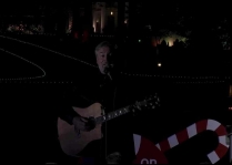 Zu einer recht kurzen aber nichtsdestoweniger stimmungsvollen Angelegenheit ist in der vergangenen Nacht die „Graceland Lighting Ceremony“ von Elvis Presley Enterprises (EPE) in Memphis geworden. Mit der traditionellen Zeremonie wurde wie jedes Jahr um diese Zeit die historische Weihnachtsdekoration von Graceland eingeweiht und die festliche Beleuchtung des Anwesens und des Geländes eingeschaltet. Die Ehre, den symbolischen Schalter umzulegen, wurde dieses Mal ‚Santa Claus’ höchstpersönlich zuteil (oberes Foto), wobei der Weihnachtsmann wie gewohnt sein Outfit durch einige typische Elvis-Accessoires erweitert hatte wie einen Glitzergürtel, ein Cape und eine dunkle Sonnenbrille mit Goldgestell. Auf den von den mehreren Hundert Besuchern stürmisch bejubelten Beginn der Graceland-Beleuchtung folgte der Auftritt des bekannten Sängers, Gitarristen und Elvis-Interpreten Andy Childs, den häufigere Besucher von EPE-Veranstaltungen schon seit Langem kennen und schätzen. Childs erfüllte die in ihn gesetzten Erwartungen vollauf, indem er sich selbst auf Gitarre begleitete und schlichte aber schöne Versionen der Elvis-Songs „The Wonder Of You“, „Blue Christmas“, „Peace In The Valley“ und „White Christmas“ darbot (unteres Foto). Der Auftritt war Elvis absolut würdig und unterschied sich wohltuend von so manchen musikalischen Darbietungen bei der Zeremonie in den vergangenen Jahren, bei denen man einen Bezug zum King nur mit viel Fantasie herstellen konnte. Die diesjährige „Graceland Lighting Ceremony“ indes stellte nur den Auftakt eines kompletten „Graceland Holiday Lighting Weekend“ dar, zu dem heute und morgen noch ein vorweihnachtliches Konzert mit Kevin und Bethany Paige sowie eine Vorführung der beiden beliebten Fernsehfilme „Christmas At Graceland“ und „Christmas At Graceland 2 – Home For The Holidays“ gehören. Datum: 17. November 2023 – Quellen: Elvis Presley Enterprises (EPE), Livestream |