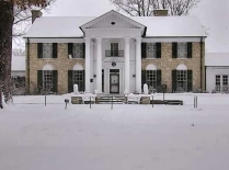 Zum Glück ist dies nicht schon vor einer Woche passiert, als in Graceland mehrere Offizielle und Ehrengäste sowie zahlreiche Fans aus aller Welt den 89. Geburtstag des King feierten: Am heutigen Montag, dem 15. Januar 2024, hat es in Memphis/Tennessee und in der umliegenden Region den ersten heftigen Schneefall dieses Winters gegeben. Der nebenstehende Anblick der schneebedeckten Villa Graceland und des sie umgebenden Grundstücks hat zwar etwas majestätisch Schönes, veranlasste Elvis Presley Enterprises (EPE) aber dazu, das Anwesen für den Besucherverkehr vorübergehend zu schließen. Sinn und Zweck dieser Maßnahme ist insbesondere, Touristen beim Gang über das Gelände und bei der Anfahrt nach Graceland nicht unnötig durch Glätte zu gefährden. Datum: 15. Januar 2024 – Quelle: Elvis Presley Enterprises (EPE) |