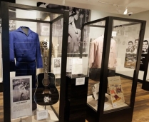 Bereits zum zweiten Mal ist die laufende große Elvis-Ausstellung in der britischen Metropole London um mehrere Monate verlängert worden. Nach der Eröffnung am 20. Oktober 2023 sollte die Schau von originalen Artefakten aus dem Graceland-Archiv von Elvis Presley Enterprises (EPE) in Memphis zunächst nur bis zum 25. Februar 2024 in der Kultur-Einrichtung „Arches At London Bridge“ im Herzen der Millionenstadt an der Themse zu sehen sein. Dann wurde die Ausstellung mit dem Titel „Direct From Graceland: Elvis – Step Inside The Legacy“ (oberes Foto vom Eingangsbereich) wegen des täglichen hohen Besucherandranges bis zum 14. April 2024 verlängert. Mehr als drei Wochen vor dem Ende dieses erweiterten Zeitrahmens haben die Verantwortlichen von EPE und der Londoner Location nun entschieden, „Elvis – Step Inside The Legacy“ über den Frühling und Hochsommer hinaus in London zu belassen. Wie bekannt gegeben worden ist, gilt die erneute Verlängerung bis zum 1. September 2024. Aber nicht nur das: EPE wird noch einige weitere bedeutende Stücke aus der Elvis-Geschichte nach Großbritannien schaffen, um die Ausstellung noch mehr aufzuwerten, die ohnehin schon über 400 Artefakte umfasst. Zu den neu zu sehenden Stücken werden Elvis’ 1974er „Grammy“-Auszeichnung für die Live-Darbietung von „How Great Thou Art“, eine rote Weste von Promotion-Fotos zum 1968er Comeback-TV-Special und die zweite spezielle Leder-Gitarren-Hülle gehören, die Elvis von Herbst 1956 bis Ende 1957 auf der Bühne für seine „Gibson J-200“-Gitarre benutzt hatte (unteres historisches Foto vom 3. April 1957). Datum: 21./22. März 2024 – Quellen: Elvis Presley Enterprises (EPE), Arches At London Bridge |