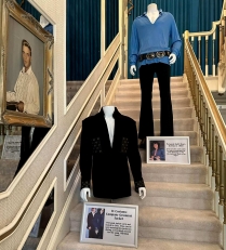 Am gestrigen zweiten Tag der „Elvis Week“ von Elvis Presley Enterprises (EPE) in Memphis zum 47. Todestag des King begann das Programm recht früh am Morgen mit einer mehrstündigen Stadtrundfahrt per Reisebus durch die Heimatstadt des King am Mississippi. Unter der sachkundigen Führung von „Elvis Week“-Moderator Tom Brown und EPE-Archiv-Leiterin Angie Marchese ging es zu vielen bedeutsamen Stätten der Elvis-Geschichte in Memphis wie dem „Sun Studio“ (oberes Foto mit Angie Marchese ganz vorne rechts), der ehemaligen „L. C. Humes High School“, den „Lauderdale Courts“ und der Freilicht-Bühne „Overton Park Shell“. Am Abend wurde es dann erstmals spannend für die zumindest in den USA immer noch sehr zahlreichen Freunde von Elvis-Imitatoren, als im EPE-Veranstaltungsgebäude „Graceland Soundstage“ das Halbfinale der diesjährigen Auflage des traditionellen Imitatoren-Wettbewerbs „The Ultimate Elvis Tribute Artist Contest“ über die Bühne ging. Für das Finale des Wettstreits am Montagabend an selber Stelle qualifizierten sich insgesamt zehn Darsteller unseres Idols. Den in diesen Tagen naturgemäß besonders zahlreichen Besuchern der Villa Graceland ist indessen eine spezielle neue Ausstellungsmaßnahme von EPE aufgefallen: In nahezu allen Räumen des Anwesens haben die Verantwortlichen originale private Kleidungsstücke des King ausgestellt, was ein wenig das Gefühl vermittelt, dass Elvis höchst selbst gerade dort steht oder entlang geht (unteres Beispielfoto von der Treppe im Flur des Anwesens). Ob diese spezielle Aktion nur während der „Elvis Week“ oder auch darüber hinaus durchgeführt wird, ist zur Stunde noch nicht bekannt. Datum: 11. August 2024 – Quellen: Elvis Presley Enterprises (EPE), Angie Marchese, Mary Stephenson |