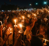 Zum emotionalen Höhepunkt der „Elvis Week“ von Elvis Presley Enterprises (EPE) in Memphis ist in der vergangenen Nacht wie erwartet der traditionelle „Candlelight Vigil“ geworden. Nachdem sich bereits am frühen Abend trotz anhaltender hochsommerlicher Temperaturen viele Tausend Fans aus aller Welt auf dem Elvis Presley Boulevard vor der Villa Graceland versammelt hatten, um dem größten Entertainer aller Zeiten in der Nacht auf seinen 47. Todestag ihre Ehre zu erweisen, begann die alljährliche Zeremonie gegen 20.30 Uhr Ortszeit mit einem kurzen offiziellen Programm. Auf die Begrüßung der Anwesenden durch Elvis-Discjockey DJ Argo folgten kurze Ansprachen von EPE-Präsident Jack Soden sowie Joel Weinshanker vom EPE-Mutterkonzern „Authentic Brands Group (ABG)“, ehe wie jedes Jahr Vertreter des alteingesessenen „Official Elvis Country Fan Club“ mit warmherzigen Worten der Trauer und der Liebe sowie ausgesuchten Song-Einspielungen zum Beginn der Kerzenprozession überleiteten. Hiernach setzte sich der vieltausendköpfige Pilgermarsch der Fans zu den Gräbern von Elvis und seiner Familie im Meditationsgarten von Graceland in Bewegung. Wie jedes Jahr nahm die ergreifende Kerzenprozession zu den Klängen von Elvis’ Balladen und Gospel-Songs etliche Stunden in Anspruch, und als die letzten Besucher von den Grabstätten auf den Elvis Presley Boulevard zurückkehrten, zog über Memphis bereits die Morgendämmerung herauf. Wieder einmal war dem King of Entertainment die Ehre, die Liebe und die Würdigung zuteil geworden, die er auf ewig verdient…! Datum: 16. August 2024 – Quellen: Elvis Presley Enterprises (EPE), Livestream, Tcheanina Watkins |