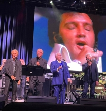 Bei der „Elvis Week“ in Memphis hat Veranstalter Elvis Presley Enterprises (EPE) den Besuchern auch in diesem Jahr wieder ein großes Haupt-Konzert am Abend des 16. August und damit direkt am Todestag des King geboten, das als musikalischer Höhepunkt des Gedenkens an den King dienen sollte. Diesmal handelte es sich um eine spektakuläre Multi-Media-Show im Gebäude „Graceland Soundstage“ mit dem Titel „Elvis Return To Vegas“, bei der Elvis Presley mit Ausschnitten aus dem „That’s The Way It Is“-Archiv von 1970 live auf Video-Wand performte und dabei von einer Band plus Chor live auf der Bühne begleitet wurde. Das Besondere daran war, dass im Chor mit Terry Blackwood und Jim Murray von den „Imperials“ sowie Larry Strickland von den „Stamps“ immerhin noch drei originale Begleitsänger des King aus den 70er Jahren mitwirkten und so der Darbietung eine großartige Authentizität verliehen. Als vierter originaler Wegbegleiter von Elvis war außerdem dessen langjähriger Mitarbeiter und enger Freund Jerry Schilling mit von der Partie, der als ‚Master of Ceremony’ (Gastgeber/Moderator) durch das Programm führte. Nebenstehendes Foto zeigt den Chor mit Terry Blackwood (l.), Jim Murray (2. v. r.) und Larry Strickland (r.) beim gemeinsamen Singen mit (Video-)Elvis auf der Leinwand hinter ihnen. Das Konzert erntete stürmischen Beifall der hingerissenen Fans und wurde verdientermaßen als ein Highlight der diesjährigen „Elvis Week“ in der Heimatstadt unseres Idols wahrgenommen. Datum: 17. August 2024 – Quellen: Elvis Presley Enterprises (EPE), Deena Dietrich, Brenda Nielsen Murray |