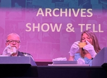 Am gestrigen neunten und damit letzten Tag der „Elvis Week“ in Memphis zum 47. Todestag des King stand noch einmal Elvis Presley ganz persönlich im Mittelpunkt der abschließenden beiden Einzelveranstaltungen. Das Geschehen begann am Vormittag im Theatersaal des Hotels „The Guest House At Graceland“ mit der Gesprächsveranstaltung vor Publikum „Archives Show & Tell“. Unter der Moderation von Tom Brown gab hierbei die Graceland-Archivleiterin Angie Marchese interessante Einblicke in die Arbeit des Graceland-Archivs (oberes Foto). Marchese hatte dazu eine ganze Reihe von Artefakten aus dem früheren Besitz von Elvis mitgebracht und erläuterte anhand dieser Beispielstücke den wissbegierigen Besuchern sowie dem oftmals halb verblüfft und halb ehrfürchtig dreinblickenden Brown, welche wertvollen historischen Stücke sich im Archiv befinden, wie diese registriert und gelagert werden und unter welchen Kriterien bestimmte Stücke zur Ausstellung entweder in Graceland selbst oder bei auswärtigen Unternehmungen wie der großen Londoner Ausstellung „Direct From Graceland: Elvis – Step Inside The Legacy“ ausgewählt werden. Am Abend stand dann noch eine stilvolle Abschiedsparty von der „Elvis Week“ auf dem Programm. Im Veranstaltungsgebäude „Graceland Soundstage“ auf dem Gelände „Elvis Presley’s Memphis“ präsentierte Elvis Presley Enterprises (EPE) eine Vorführung des Elvis-Spielfilm-Klassikers „Loving You“ von 1957 auf großer Leinwand (unteres Foto), an die sich eine Elvis-Disco mit D. J. Argo als Discjockey unmittelbar anfügte. Zu den Klängen der größten Hits und beliebtesten Songs des King tanzten die Fans dabei noch bis tief in die Nacht. Datum: 18. August 2024 – Quellen: Elvis Presley Enterprises (EPE), Deena Dietrich, Debbie Hewett Anderson |