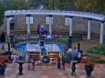 Offenbar nahezu abgeschlossen sind die Renovierungsarbeiten im „Meditation Garden“ von Elvis’ Villa Graceland in Memphis. Die Arbeiten betrafen die Steinmauer, die sich halbkreisförmig um die Gräber von Elvis, seinen Eltern Vernon und Gladys und seiner Großmutter Minnie Mae erstreckt. Aufgefallen waren die Renovierungsmaßnahmen im vergangenen Frühsommer, als plötzlich große Holzplatten vor der Steinmauer angebracht waren und den Blick auf diese verdeckten. Nun sind diese Platten wieder entfernt worden und scheinen die Arbeiten weitgehend beendet worden zu sein. Lediglich die bunten Fenster-Imitate in der Mauer fehlen noch, so dass man optimistisch sein darf, dass rechtzeitig zum runden 90. Geburtstag des King im kommenden Januar 2025 im „Meditation Garden“ alles wieder so aussieht wie gewohnt. Datum: 26./27. November 2024 – Quelle: Sandy Laughlin Murdock |