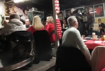 Eine wundervolle Elvis-Weihnachtsfeier mit den Fanclubs „Elvis Memories Belgium“ aus Belgien, der seit Kurzem unter dem neuen Namen „Elvis On Tour Belgium“ firmiert, und „The King’s World (TKW)“ aus Deutschland hat am Samstag, dem 7. Dezember 2024, in der belgischen Großstadt Antwerpen stattgefunden. Ort des Geschehens war der Club-Saal von „Elvis On Tour Belgium“ im Antwerpener Stadtteil Deurne, der bei der Feier unter dem schlichten aber treffenden Titel „Elvis Christmas“ mit rund 50 Personen restlos ausgebucht war. Bemerkenswert war hierbei schon mal, dass die Fans aus vier verschiedenen Ländern – nämlich aus Belgien, den Niederlanden, Frankreich und Deutschland – kamen, womit sich wieder einmal zeigte, wie verbindend Elvis über alle Grenzen und Sprachbarrieren hinweg sein kann (oberes Foto). Musikalisch ließ sich die ursprüngliche Idee, zwei Elvis-Interpreten live auftreten zu lassen, aus technischen Gründen nicht realisieren, doch störte dies niemanden, denn den King persönlich vor allem mit seinen ausdrucksstarken Christmas- und Gospel-Songs von CD laufen zu lassen, sorgte eigentlich erst recht für eine besonders stimmungsvolle Atmosphäre. Als rauschende Tanzparty war die Veranstaltung ohnehin nicht gedacht, und so genossen die Fans in familiärem Ambiente umso ausgiebiger das festliche Essen, das u. a. aus Schweinebraten und aus Schrimps in Rahmsoße bestand. Nach dem Dinner sorgte eine Tombola für viel Spannung, für die „Elvis On Tour Belgium“-Präsident Frans Michielsen (zweites Foto) eine ganze Reihe wertvoller Elvis-Fanartikel als Gewinne bereitgestellt hatte. Ebenso groß war das Interesse an dem Fanclub-Infostand von „The King’s World“, an dem sich das TKW-Event-Team mit Peter und Sandra Beines an der Spitze über gleich mehrere neue Mitglieder freuen konnte (drittes Foto). Ja, und dann war da noch ein Hund namens „Mickey“: Der 11-jährige Jack Russell-Terrier entwich schon zu Beginn des Events seinem Herrchen Frans Michielsen, um schwanzwedelnd herauszufinden, bei welchem der 50 Gäste er wohl die meisten Streicheleinheiten einheimsen konnte. Diese fanden sich zur Erheiterung aller prompt bei der 13-jährigen TKW-Junior-Mitarbeiterin Melissa Beines, mit der „Mickey“ an diesem Samstag in Antwerpen zu den Klängen des King eine tiefe Freundschaft schloss... (unteres Foto)! Datum: 7./8. Dezember 2024 – Quellen: TKW-Event-Team, Fanclub „Elvis Memories Belgium“ („Elvis On Tour Belgium“) |
