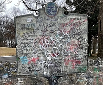 Über unsere Freunde und Kontaktpersonen in den USA sind wir auf eine leider unschöne Angelegenheit aufmerksam geworden, die sich an der Mauer direkt vor dem Grundstück von Elvis Presleys Villa Graceland in Memphis ereignet hat. Vor einigen Tagen hat Elvis Presley Enterprises (EPE) das Schild bei dem Anwesen, das offiziell darauf hinweist, dass Graceland zu den „Historic Places“ Amerikas gehört, mit einem hässlichen schwarzen Metallzaun umgeben (oberes Foto). Offenbar sah sich EPE zu der Einzäunungsmaßnahme gezwungen, um die bedeutungsvolle Tafel davor zu bewahren, immer wieder mit Beschriftungen von Fans des King übersät zu werden. Die Beschriftungen ähneln denen, die die Elvis-Anhänger schon seit Jahrzehnten immer wieder auf der Mauer des Graceland-Grundstücks hinterlassen, führen aber dazu, dass man überhaupt nicht mehr erkennen kann, was auf dem „Historical Marker“ geschrieben steht (unteres Foto). Unsere Meinung hierzu ist sehr eindeutig: Die Gedenktafel ist eine wertvolle offizielle Manifestation der Bedeutung von Graceland – und damit auch der Bedeutung von Elvis – für die weltweite Kulturgeschichte und sollte auch von noch so begeisterten Fans grundsätzlich unberührt bleiben. Wenn es sich bedauerlicher Weise aber so verhält, dass manche Fans die Disziplin und Empathie für eine solche spezifische Zurückhaltung nicht aufzubringen in der Lage sind, muss sich EPE in der Tat etwas einfallen lassen. Doch warum um Himmels willen kommt den Verantwortlichen nicht etwas Besseres in den Sinn als diese unansehnliche Einzäunung? Man hätte z. B. das Schild hinter die Mauer des Grundstücks versetzen können und damit auf ganz simple aber dennoch geschickte und wirkungsvolle Weise den Besuchern den Zugriff auf die Tafel versperren können! Datum: 16. Mai 2025 – Quellen: Elvis Presley Enterprises (EPE), Sandy Laughlin Murdock, Keith Alverson |