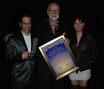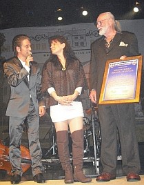 Mit Bob Moore hat „The King’s World“ im Jahr 2011 ganz bewusst erstmals einen musikalischen Weggefährten des frühen Elvis ausgewählt, den „Elvis Presley Memorial Award“ zu erhalten. Eine große Ehre war es dabei für Peter und Sandra Beines, auf Einladung des dänischen Fanclub-Präsidenten Henrik Knudsen die Award-Überreichung als gesonderten Programmpunkt der Show „Good Rockin’ Tonite“ am 28. Oktober 2011 vor großem Publikum in der „Vaerket“-Halle in Randers/Dänemark vornehmen zu dürfen. Die mit der Verleihung einhergehende ‚Standing Ovation’ der Fans sorgte bei dem Geehrten umso mehr für stolze Freude und Tränen der Rührung. | ![]() |