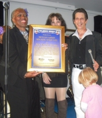 „The King’s World (TKW)“ freut sich, mit Estelle Brown im Jahr 2013 erstmals einen weiblichen musikalischen Weggefährten Elvis Presleys für den „Elvis Presley Memorial Award“ ausgewählt zu haben. Eine große Ehre war es dabei für die TKW-Leitung mit Peter und Sandra Beines, auf Einladung des dänischen Fanclub-Präsidenten Henrik Knudsen die Award-Überreichung als gesonderten Programmpunkt der „Sweet Inspirations“-Show am 9. Oktober 2014 im bekannten Graceland-Nachbau „Graceland Randers“ in Randers/Dänemark vornehmen zu dürfen. Estelle Brown wiederum betonte in einer ergriffenen Dankesrede, dass es eine Segnung gewesen sei, mit Elvis Presley auf einer Bühne gestanden zu haben. | ![]() |