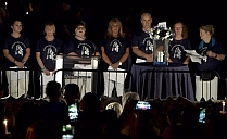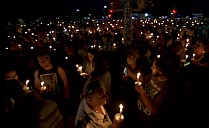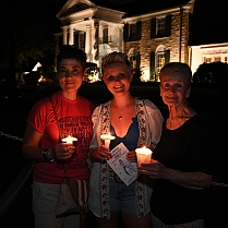 In Elvis Presleys Heimatstadt Memphis/Tennessee wurde in der vergangenen Nacht wieder der emotionale Höhepunkt des Gedenkens an den größten Entertainer aller Zeiten erreicht. Beim „Candlelight Vigil“, dem traditionellen Herzstück der alljährlichen „Elvis Week“ von Elvis Presley Enterprises (EPE), versammelten sich auch in diesem Jahr wieder Tausende und Abertausende von Fans, um mit Kerzen in den Händen zum Grab des King im Meditationsgarten seiner Villa Graceland zu pilgern und unserem Idol in der Nacht auf seinen heutigen 48. Todestag ihre Ehre zu erweisen. Die Menschen ließen sich dabei auch von den tropischen Temperaturen nicht zurückhalten, die gestern Abend in Memphis bei satten 31 Grad lagen. Die ewige Liebe der Fans war zu jeder Zeit spürbar, und wie jedes Jahr zog sich die Prozession bis in die frühen Morgenstunden hin. Begonnen hatte der „Candlelight Vigil“ pünktlich um 20.30 Uhr Ortszeit mit berührenden Ansprachen von EPE-Präsident Jack Soden und von Joel Weinshanker vom EPE-Mutterkonzern „Authentic Brands Group (ABG)“. Jack Soden wirkte dabei extrem gealtert und gebrechlich, so dass man sich um die Gesundheit des Mannes, der seit 1982 die Geschicke von EPE ununterbrochen lenkt, leider ernsthafte Sorgen machen muss (oberes Foto). Auf die Ansprachen der Chefs folgte wie in jedem Jahr der Auftritt des alteingesessenen „Official Elvis Country Fan Club“ (mittleres Foto), der mit warmherzigen Worten und ausgewählten Elvis-Song-Einspielungen zum Beginn der vielstündigen Kerzenprozession überleitete (unteres Foto). Datum: 16. August 2025 – Quellen: Elvis Presley Enterprises (EPE), Vimeo, Betty Rosenblatt |