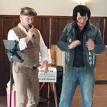 Eine musikalisch hochwertige Veranstaltung in Erinnerung an Elvis Presley und an die legendäre Rock- und Pop-Musik der 50er, 60er und 70er Jahre haben die Besucher am gestrigen Samstag, dem 27. September 2025, bei der diesjährigen Auflage der populären Event-Reihe „Elvis & Oldies Namiddag“ in Rijsbergen in den Niederlanden erlebt. Für das hohe Niveau der Live-Auftritte sorgten vor allem zwei Elvis-Interpreten, die bislang noch nie im „Feestzaal Buitenlust“ aufgetreten waren, nämlich die beiden Niederländer Jonnie Mulder und Frank Anthony. Stimmlich hervorragend, charmant, mit spürbarer Freude sowie mit interessanter Song-Auswahl überzeugten Mulder und Anthony jeden im Saal und sorgten für eine tolle Stimmung. Besonders bemerkenswert war hierbei die Fähigkeit zur Improvisation, die neben anderen Eigenschaften einen guten Künstler ausmacht: Eigentlich sollte Jonnie Mulder an zweiter Stelle und Frank Anthony an dritter Stelle der vereinbarten Auftrittsabfolge performen, doch dann bestritten die beiden Sänger spontan einen Teil ihrer Show gemeinsam und brachten insbesondere mit Duetten von „A Big Hunk O’ Love“ und „Steamroller Blues“ den Saal zum Kochen (oberes Foto). Warum dieser Saal im Gegensatz zu allen früheren dortigen Elvis-Events mit nur etwa 50 Besuchern noch nicht mal zur Hälfte gefüllt war, blieb indes das Rätsel des Tages. Nachdem immer wieder Fans gefordert hatten, den „Elvis & Oldies Namiddag“ vom bisher gewohnten Sonntag auf Samstag zu verlegen und die Veranstalter nun erstmals diesem Wunsch gefolgt waren, tauchten genau diese Leute am jetzigen Samstag ebenso wenig auf wie früher am Sonntag! Dazu schien anderen Stammgästen eben diese Terminänderung nicht zu passen, so dass weniger Menschen als je zuvor dem Ruf der verantwortlichen Partner-Fanclubs „Elvis Memories Belgium“ und „The King’s World“ nach Rijsbergen gefolgt waren. Am Ende verstehe dies, wer will... Dennoch änderte der überraschend geringe Publikumszuspruch nichts an der großartigen Atmosphäre im „Feestzaal Buitenlust“ (unteres Foto), zu der neben den Live-Auftritten auch eine Elvis-Tombola und ein vielfältig bestückter Elvis-Fanartikel-Markt beitrugen. Und was den nächsten Termin angeht, haben die Verantwortlichen bereits gestern Abend beschlossen, im Jahr 2026 mit dem „Elvis & Oldies Namiddag“ wieder zurück auf Sonntag zu gehen. Datum: 28. September 2025 – Quellen: TKW-Event-Team, Fanclub „Elvis Memories Belgium“, Riekie van der Lugt van Acquoij |