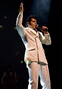 Seit dem vergangenen Wochenende läuft in der südwestdeutschen Großstadt Stuttgart die neue Show „Legendary: Elvis“, produziert und inszeniert von Ralf Sun. Als offizieller Partner der Produktion befand sich das Event-Team unseres Fanclubs „The King’s World (TKW)“ am vergangenen Samstag, dem 13. September 2025, vor Ort und konnte sich einen guten Eindruck davon verschaffen, was „Legendary: Elvis“ zu bieten hat. Location der neuen Show ist das „Friedrichsbau Varieté Theater“ im Stuttgarter Stadtteil Feuerbach, eine renommierte Einrichtung mit langer Tradition, deren stilvolles Ambiente mit ein wenig Las Vegas-Feeling einen bestens geeigneten Rahmen für ein ambitioniertes neues Elvis-Show-Programm bildet. Die immer noch beträchtliche Strahlkraft des Themas Elvis und der gute Ruf des Theaters lockten über 200 Besucher in den damit nicht ausverkauften aber sehr gut gefüllten Saal, was für eine Darbietung, die vier Mal pro Woche zu erleben ist, eine positive Resonanz darstellt. Der Anspruch von „Legendary: Elvis“ besteht darin, dem Besucher eine musikalische Revue des Lebens und der Karriere von Elvis Presley zu bieten. Die Darbietung benutzt hierbei ein bewährtes dramaturgisches Stilmittel, das man bereits aus anderen Elvis-Show-Produktionen und auch aus Filmen über den King kennt: Das Geschehen startet mit dem Ende von Elvis’ Leben, um dann auf dessen Anfänge zurück zu blicken und die glanzvolle Karriere-Geschichte des King zu erzählen, ehe die Story zu ihrem Ausgangspunkt – also dem Abschied des King aus unserer irdischen Welt – zurückkehrt. In diesem Sinne beginnt „Legendary: Elvis“ mit der Kurzform eines typischen Elvis-Konzertes der 70er Jahre, bei der Elvis-Darsteller Nils Strassburg im „Aloha Eagle Suit“ sofort zeigt, dass er nach wie vor zu den besten Vertretern des Genres der Verkörperung des King in Deutschland gehört (oberes Foto). Dass die Begleitmusik zur Performance von Strassburg nicht von einer Live-Band beigesteuert wird, sondern nur als Playback eingespielt wird, fängt die Produktion dadurch gekonnt auf, dass weite Teile der Auftritte von Nils Strassburg von einem glamourösen Tanz-Ensemble begleitet werden, deren vier junge Damen viel Charme und Schönheit auf die Bühne zaubern. Nach dem Eröffnungsblock betritt der junge Schauspieler Ruben Dietze die Szenerie, der Elvis Presleys tot geborenen und nun als Engel zurückkehrenden Zwillingsbruder Jessie Garon Presley darstellt (zweites Foto). In der Folge führt dieser Engel als Erzähler durch das Programm und somit durch das Leben seines berühmten Bruders, wobei sich passend zu den Lebensstationen von Elvis bewundernde, nachdenkliche, traurige und auch humorige Passagen abwechseln. Die Herausforderung, diese Stimmungswechsel glaubwürdig, einfühlsam und dennoch unterhaltsam zu vollziehen, meistert Ruben Dietze hervorragend. Und so erleben die Fans und Zuschauer in der Tat eine temporeiche Revue mit unserem Idol als Rock’n’Roll-König der 50er Jahre (drittes Foto), als US-Soldat in Deutschland, als Film-Star der 60er Jahre, beim triumphalen Comeback von 1968/69 und schließlich wieder als Entertainment-King der 70er Jahre. Nils Strassburg beweist bei alledem, dass auch er es versteht, den jungen Elvis ebenso überzeugend zu verkörpern wie den älteren. Ein weiterer Bestandteil des Programms besteht aus mehreren Artistik-Darbietungen erstklassiger Akrobaten (unteres Foto). Zur musikalischen Untermalung dieser Passagen werden keine Elvis-Songs benutzt, weil die auftretenden Künstler bei ihren Vorführungen ihre gewohnten Kür-Musiken verwenden. Als musikalischer Fremdkörper in einem Elvis-Programm empfindet man diesen Umstand dennoch nicht, weil die Auftritte einerseits hoch spektakulär und dadurch extrem sehenswert sind und weil ihnen andererseits kein zu großer zeitlicher Raum zwischen den eigentlichen Elvis-Passagen eingeräumt wird. Als Lohn für die außergewöhnliche Mischung aus Elvis-Musik-Show, Artistik und Schauspiel spendeten die Besucher im „Friedrichsbau Varieté Theater“ allen Mitwirkenden stürmischen Applaus und am Ende eine standing Ovation. Viel Interesse generierte außerdem der Stand unseres Fanclubs „The King’s World“. Herzlich danken möchten wir der Leitung und dem gesamten Team des Theaters – insbesondere dem Marketing-Leiter Mario van der Linden – für die jederzeit äußerst angenehme, freundliche und professionelle Zusammenarbeit. „Legendary: Elvis“ wird nun noch bis zum 9. November 2025 mit vier Aufführungen pro Woche im „Friedrichsbau Varieté Theater“ in Stuttgart zu erleben sein. Alle genauen Infos zu Örtlichkeit, Terminen und Tickets finden sich weiterhin in der Rubrik „Elvis-Events“ hier auf unserer TKW-Internetseite. Datum: 17. September 2025 – Quellen: TKW-Event-Team, Friedrichsbau Varieté Theater |