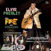 Fast schon schwindelig kann einem angesichts des Veröffentlichungstempos der unabhängigen britischen Firma „Memphis Recording Service (MRS)“ in diesem Jahr 2024 werden. Kaum dass sich die 4-CD- bzw. 4-LP-Box „The Complete Movie Masters 1960-62“ auf dem europäischen Musikmarkt befindet, hat das Label von Joseph Pirzada schon das nächste Elvis-Produkt herausgebracht. Und dieses hat es wirklich in sich! Es handelt sich um ein Set namens „Elvis Presley On Fire In Toledo 1956“. Enthalten sind ein noch unveröffentlichtes Radio-Interview des Reporters Ron Ross vom Sender „WOWO“ mit Elvis am 22. November 1956 in Toledo/Ohio sowie ebenfalls noch unveröffentlichte Live-Aufnahmen des Senders von Elvis’ Nachmittagskonzert in der „Sports Arena“ von Toledo am selben Tag. An jenem 22. November 1956 hatte der bereits zum König des Rock’n’Roll gewordene junge Elvis im Rahmen einer triumphalen Herbst-Tournee durch die USA zwei Konzerte in Toledo gegeben, die mit jeweils 6500 Fans restlos ausverkauft waren und die Arena in ein typisches 1956er Elvis-Tollhaus verwandelten. Die wie durch ein Wunder erhalten gebliebenen und erst kürzlich wiederentdeckten Radio-Aufnahmen umfassen leider nicht den kompletten Auftritt des King sondern nur die Songs „Heartbreak Hotel“, „Long Tall Sally“ und „Don’t Be Cruel“. Dazu mussten diese auch noch mit großem technischem Aufwand vom Kommentar von Ron Ross befreit werden, der wie ein Sportreporter beim Fußballspiel das Geschehen in der Halle während der Elvis-Show kommentiert hatte. Das Ergebnis kann sich hören lassen und stellt eine historisch äußerst wertvolle Veröffentlichung dar. „MRS“ hat „Elvis Presley On Fire In Toledo 1956“ einmal als CD-Single (obere Flyer-Abbildung) sowie einmal als Vinyl-EP-/CD-Single-Kombination im Klappcover (untere Flyer-Abbildung) veröffentlicht, wobei es letztere einmal mit pinkfarbenem und einmal mit grünem Vinyl gibt. Erhältlich sind die Produkte direkt beim Hersteller „Memphis Recording Service“ in Großbritannien. Datum: 3./4. Mai 2024 – Quelle: Memphis Recording Service (MRS) |